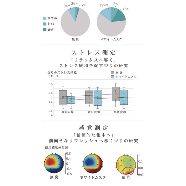 ・ユニセックスなホワイトムスクの香りが、リラックスした雰囲気を演出し、心地よい時間を提供します。