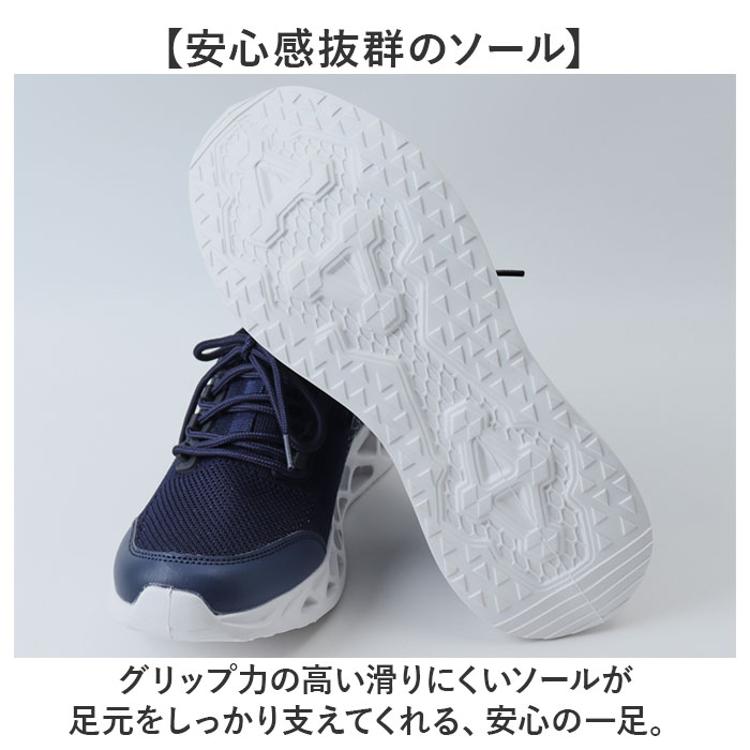 ・グリップ力の高い滑りにくいソールが足元をしっかり支えてくれる、安心の一足。