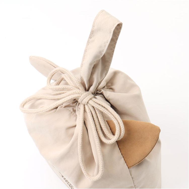 ・両サイドの紐を絞って結ぶ、巾着タイプ。キュッと絞ると、にゃふにゃふの顔型に♪