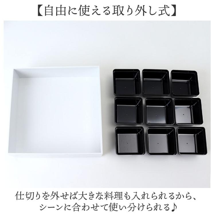 ・仕切りが付いているから料理を美しく配置でき、おせちやオードブルの見栄えが格段にアップ◎