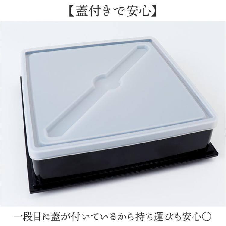 ・仕切り付き二段重で、おせちもお弁当も美しく演出。