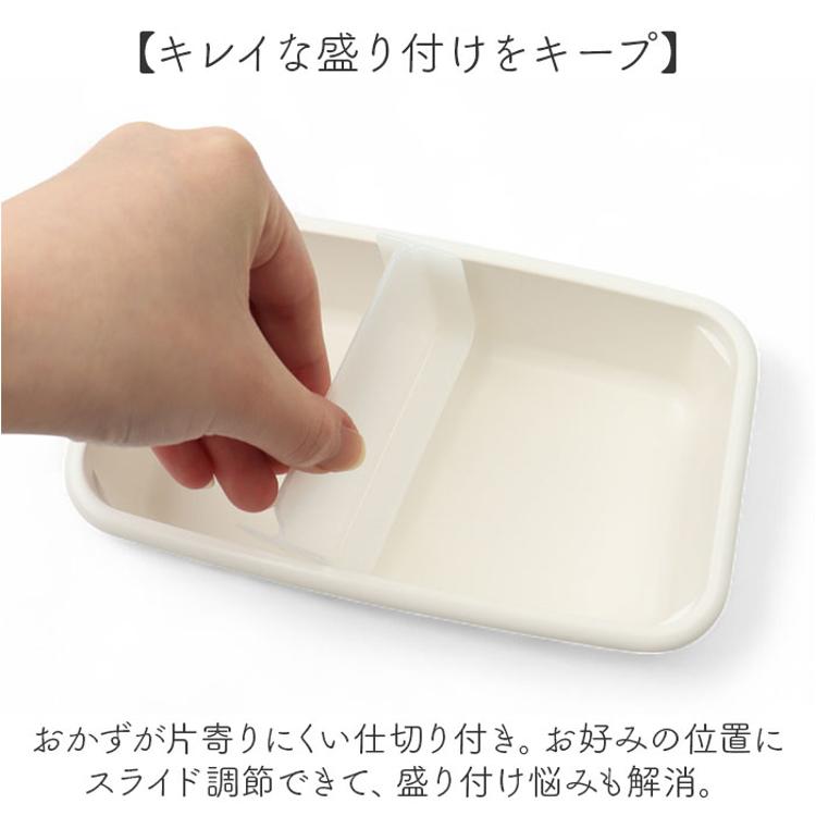 ・おかずが片寄りにくい仕切り付き。お好みの位置にスライド調節できて、盛り付け悩みも解消。