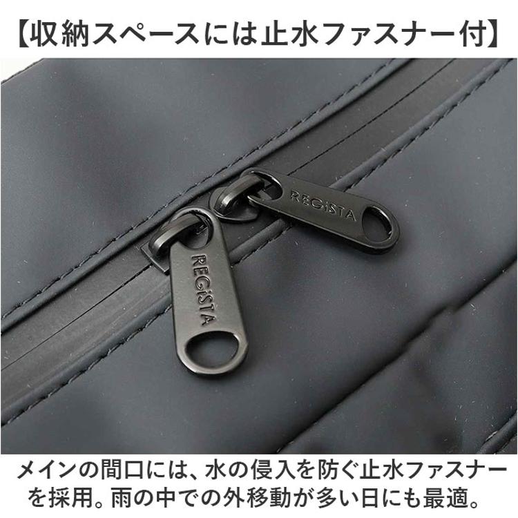 ・メインの間口には、水の侵入を防ぐ止水ファスナーを採用。雨の中での外移動が多い日にも最適。