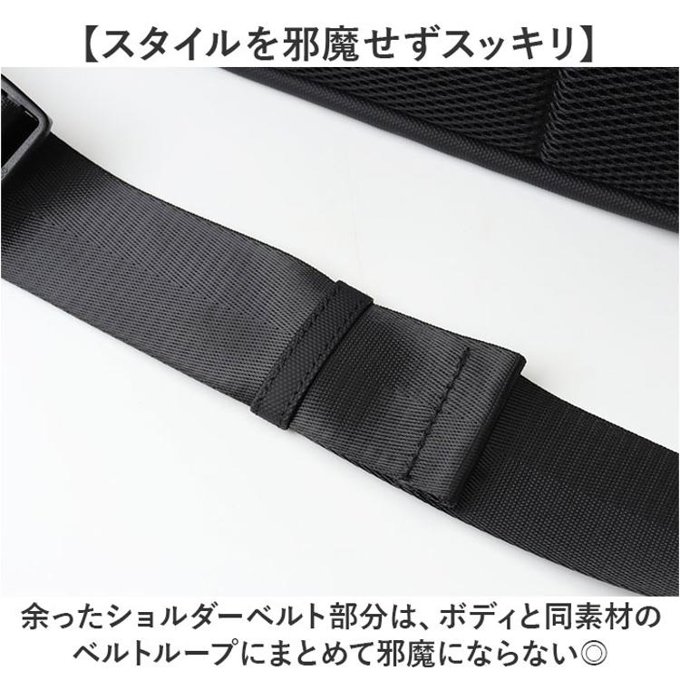 ・余ったショルダーベルト部分は、ボディと同素材のベルトループにまとめて邪魔にならない◎