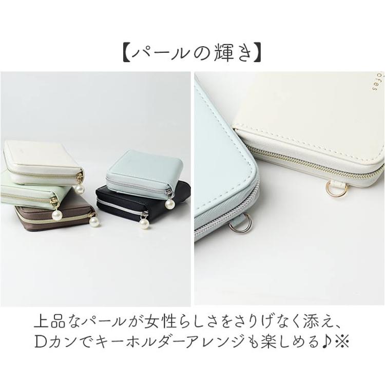 ・上品なパールが女性らしさをさりげなく添え、Dカンでキーホルダーアレンジも楽しめる♪※ファスナーやDカンの色はカラーにより異なります。