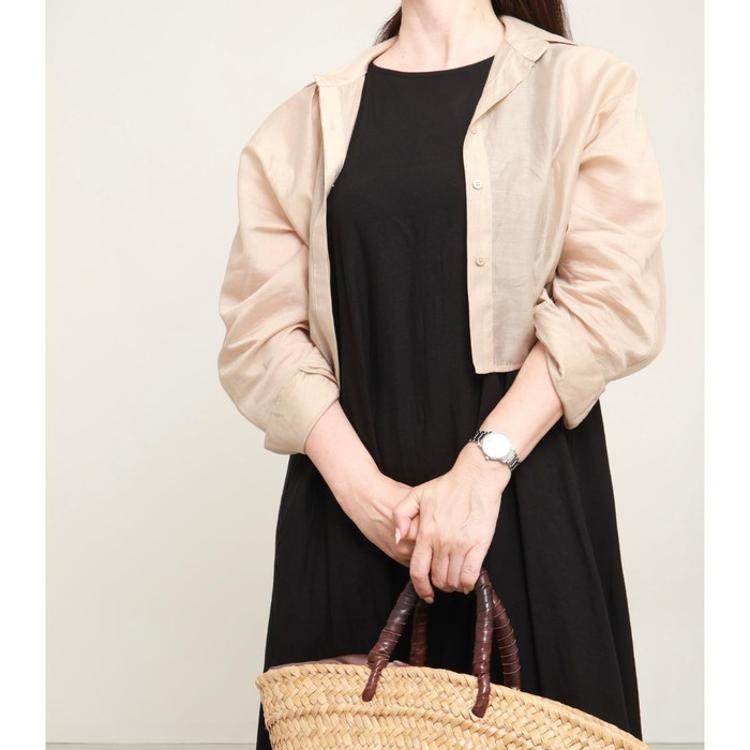・丈は短めなので、ボタンは留めずにワンピースやパンツに羽織ってお召しいただいた方が綺麗なバランスに。