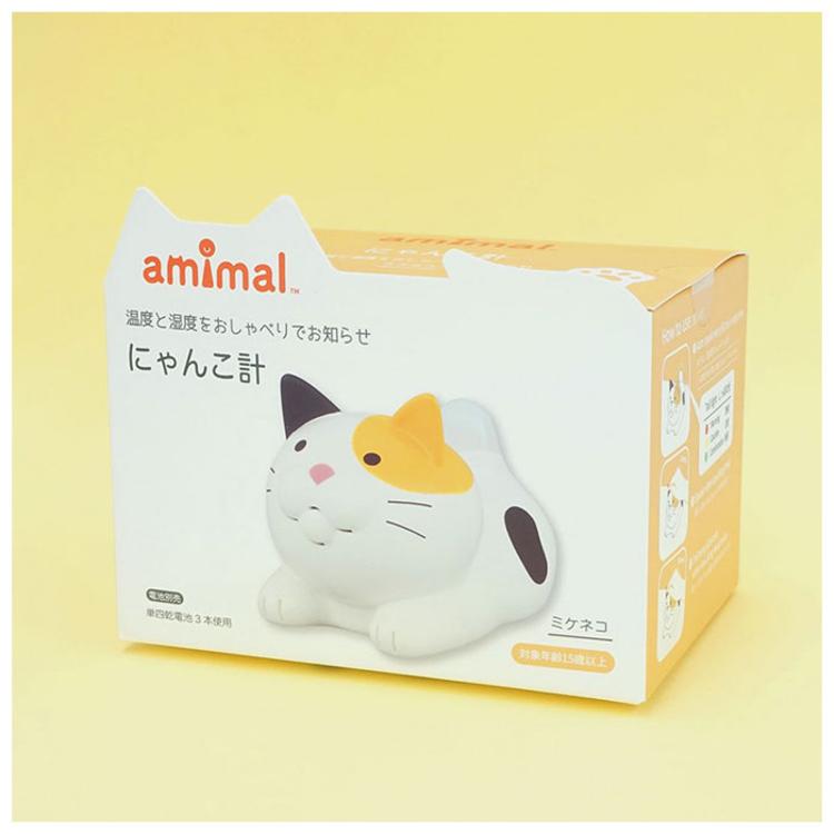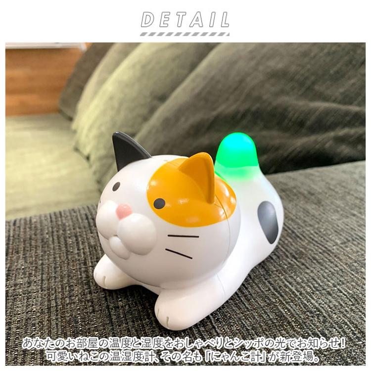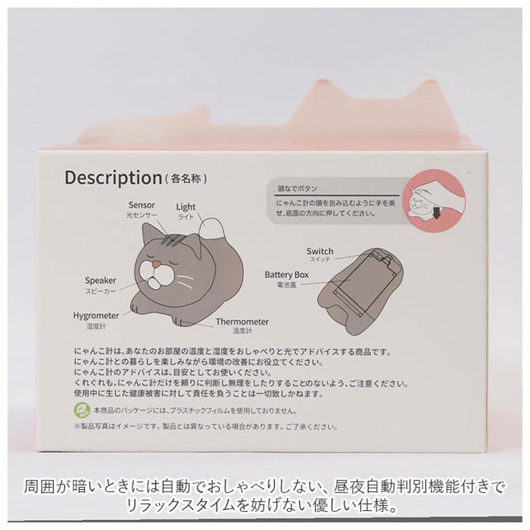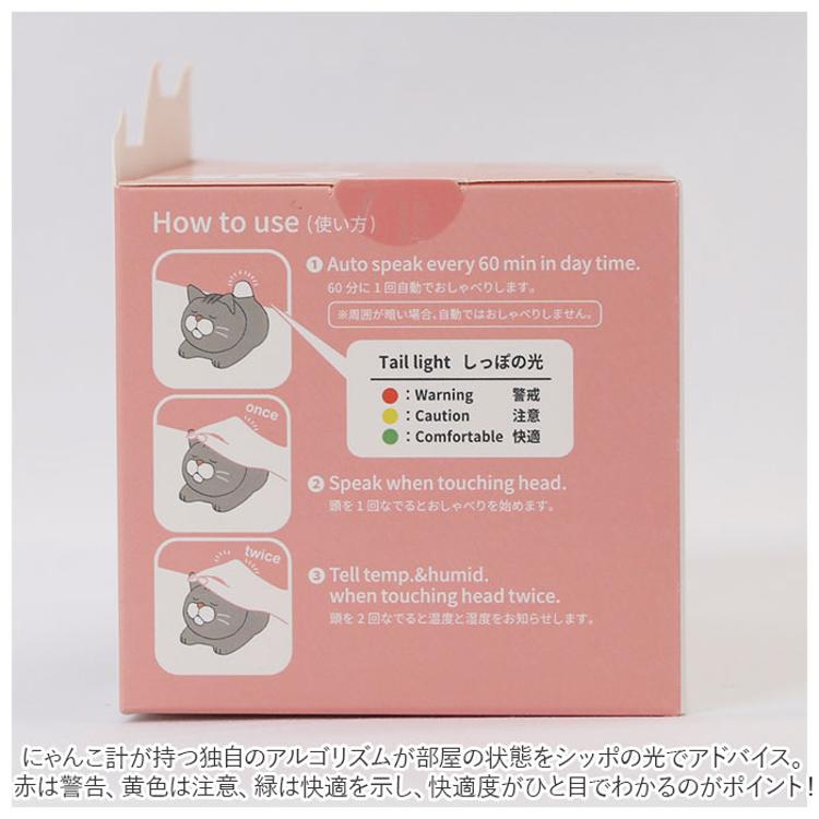 ・にゃんこ計が「にゃーにゃー」と鳴いたら、にゃんこ計との暮らしがスタート。夏の熱中症対策や冬の乾燥対策など、お部屋の見守りマスコットにどうぞ♪(※対象年齢15歳以上の温湿度計です。)