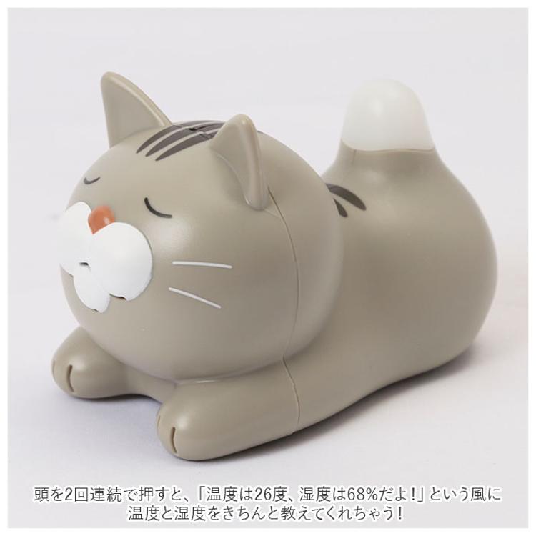 ・お部屋の温度・湿度を元に、60分に1回自動でおしゃべり。「もっとカラッとしないかにゃ~」など、バリエーション豊かな90種類のおしゃべりで、お部屋がパッとにぎやかに。
