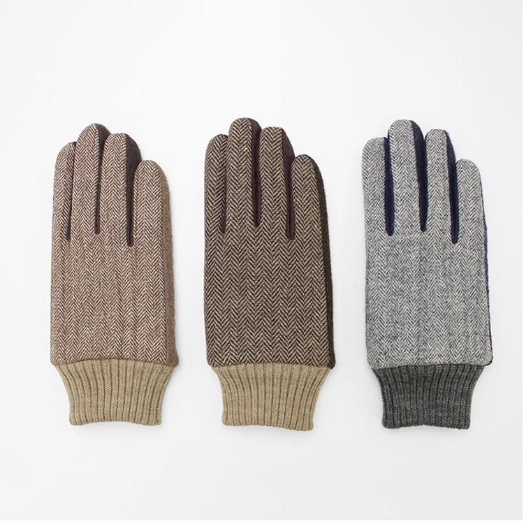 商品説明・トラッドな生地を使用したニットカフス付き手袋。