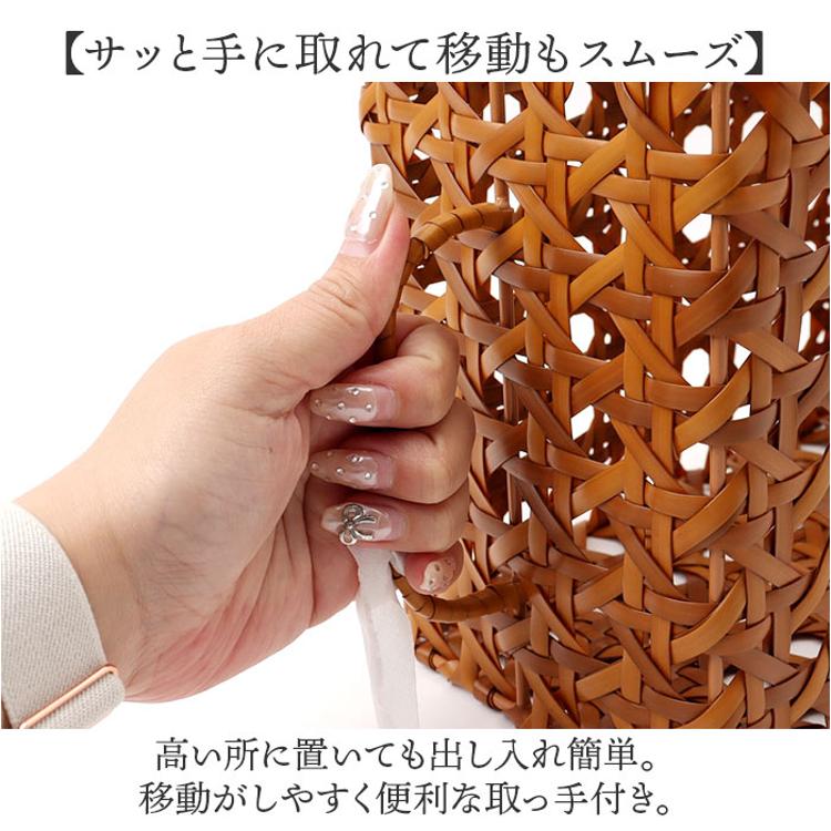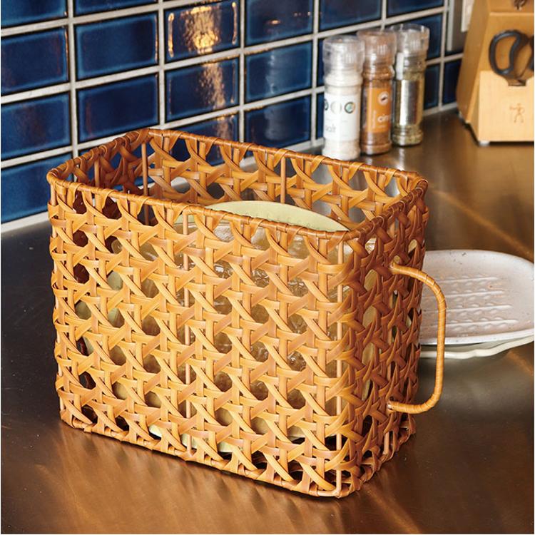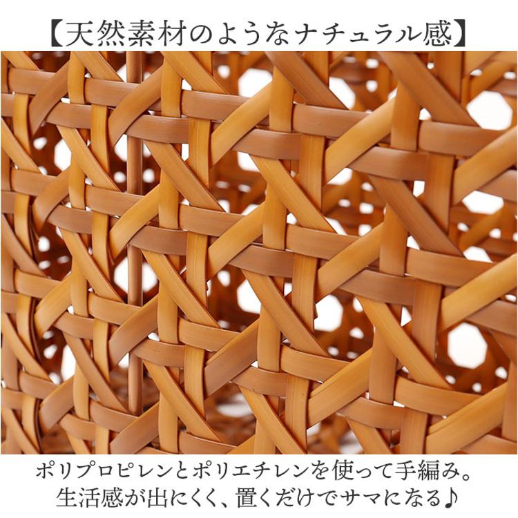 ・ポリプロピレンとポリエチレンを使って手編み。生活感が出にくく、置くだけでサマになる♪
