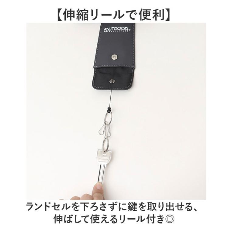・ランドセルに付けたまま使えるOUTDOORリール付きキーケース。