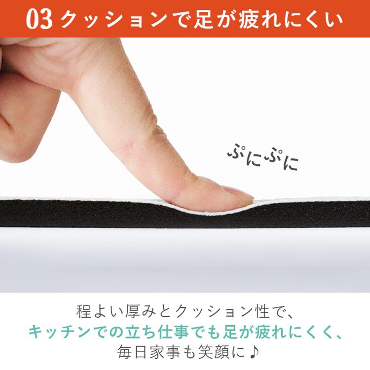 ・ぷにぷにの触感が気持ちいい!程よい厚みとクッション性で、足に優しいソフトな踏み心地。キッチンでの立ち仕事でも足が疲れにくく、毎日家事をするママも笑顔に♪