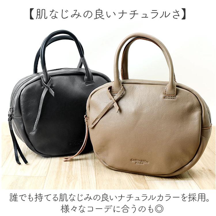 ・バッグのシルエットは丸い形で、女性らしい優しい雰囲気を演出。