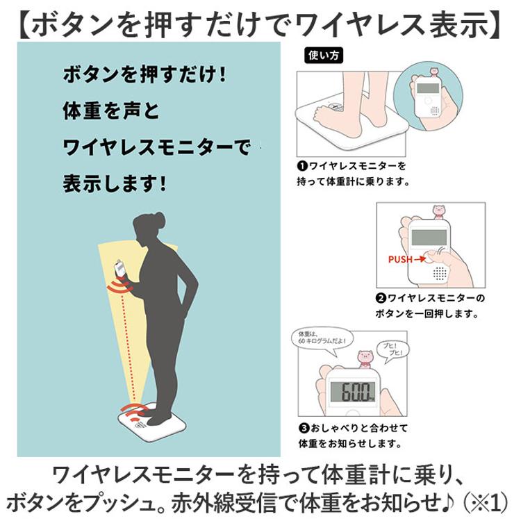 ・ワイヤレスモニターを持って体重計に乗り、ボタンをプッシュ。赤外線受信で体重をお知らせ♪