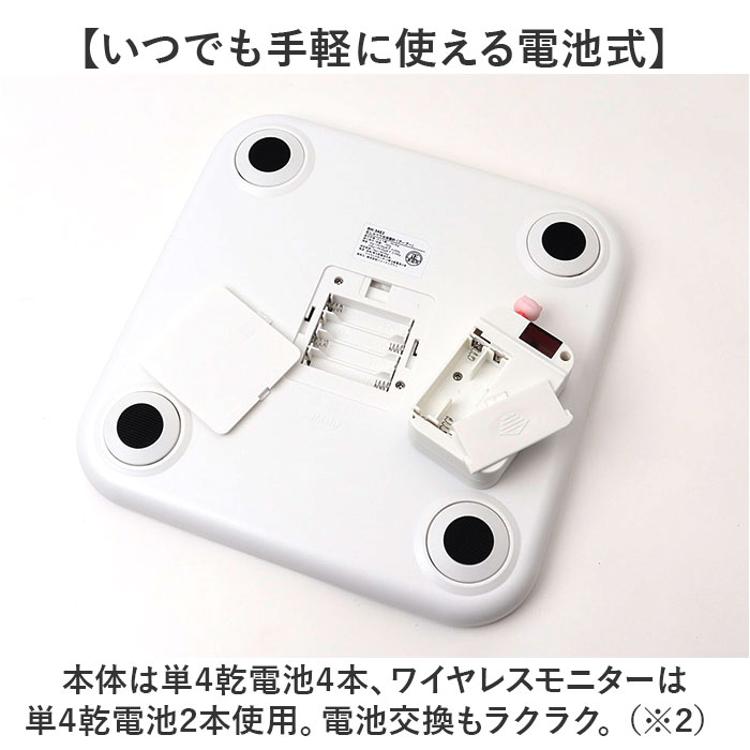 ・本体は単4乾電池4本、ワイヤレスモニターは単4乾電池2本使用。電池交換もラクラク。