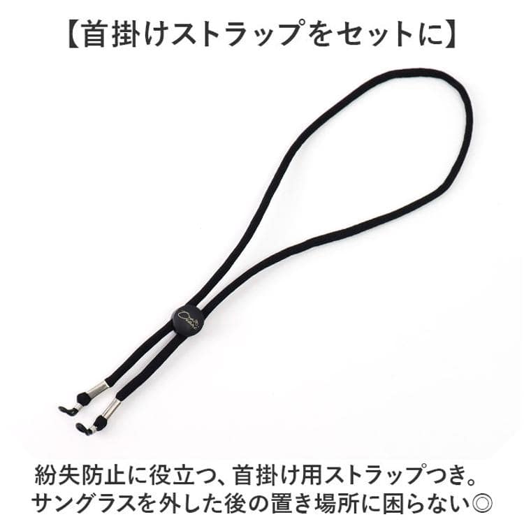・紛失防止に役立つ、首掛け用ストラップつき。サングラスを外した後の置き場所に困らない◎