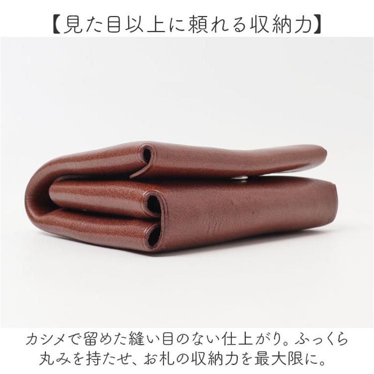 ・カシメで留めた縫い目のない仕上がり。ふっくら丸みを持たせ、お札の収納力を最大限に。