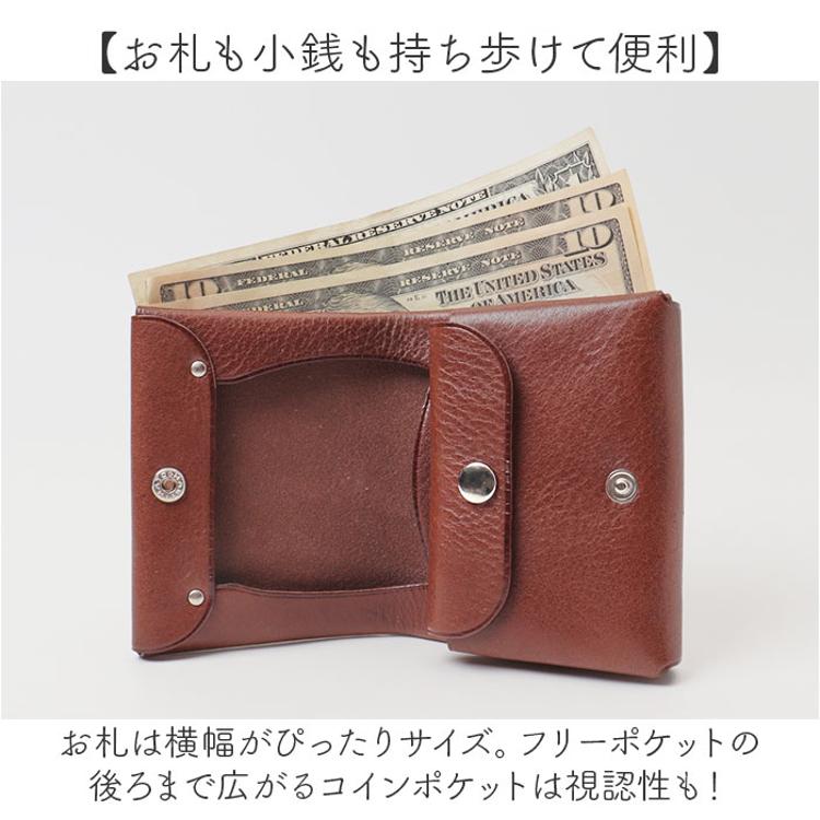 ・内側:スナップボタン式フラップのカードポケット×1、フリーポケット×1、コインポケット×1、お札入れ×1