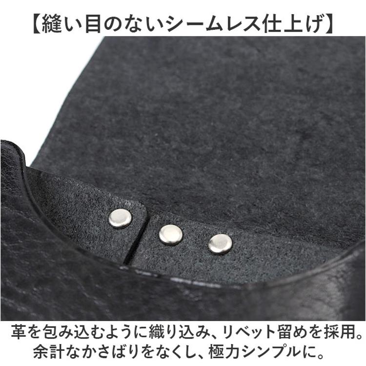・革を包み込むように織り込み、リベット留めを採用。余計なかさばりをなくし、極力シンプルに。