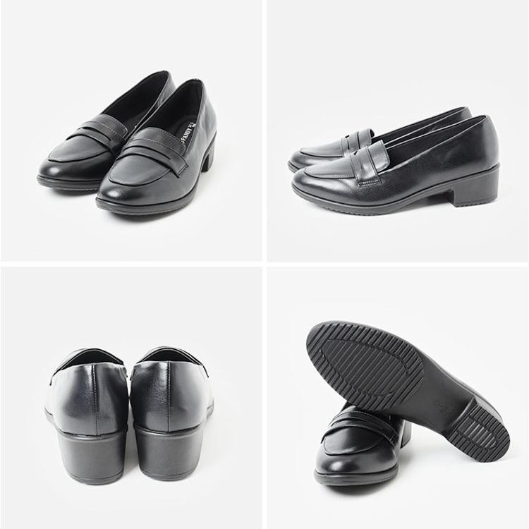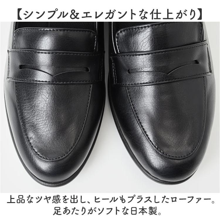・上品なツヤ感を出し、ヒールもプラスしたローファー。足あたりがソフトな日本製。