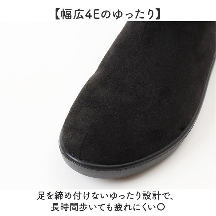 ・足を締め付けないゆったり設計で、長時間歩いても疲れにくい〇