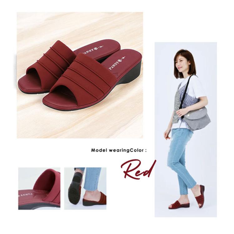 ・中敷に型押し加工を施し、足裏の前滑りを抑えて歩きやすい仕様に。