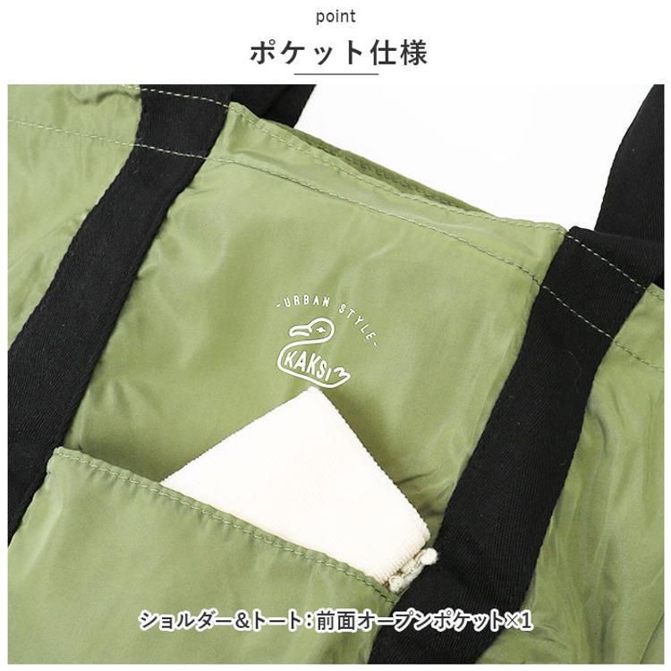 ・ポーチの背面ポケットからトートを取り出し、広げるだけ。A4サイズ対応で荷物が増えた時も安心◎