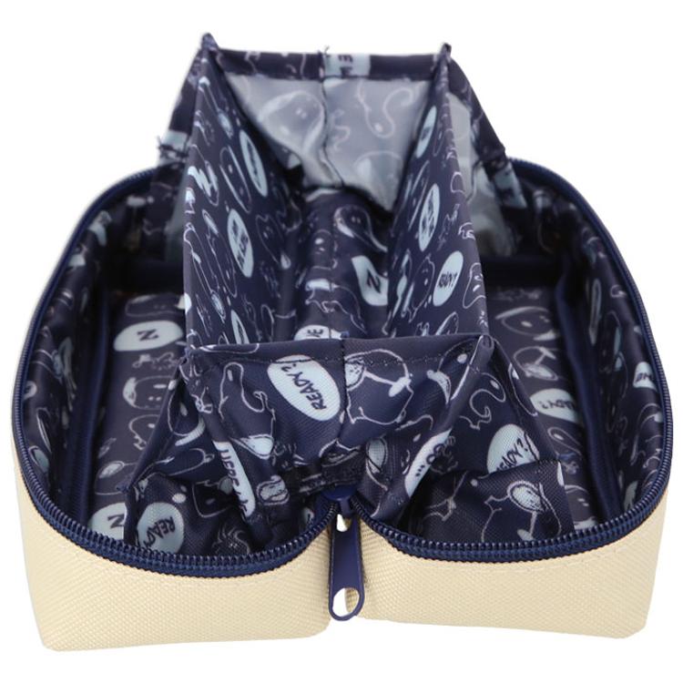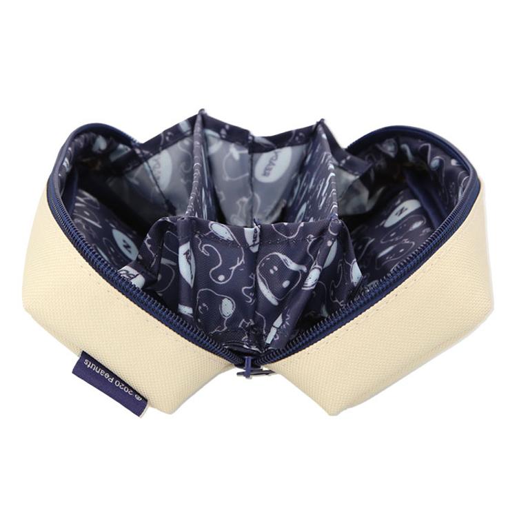 ・ポーチ底部にマグネットが内蔵されているので、ファスナーを全開にすることで底部同士がくっつき、開いたままの状態がキープできる。