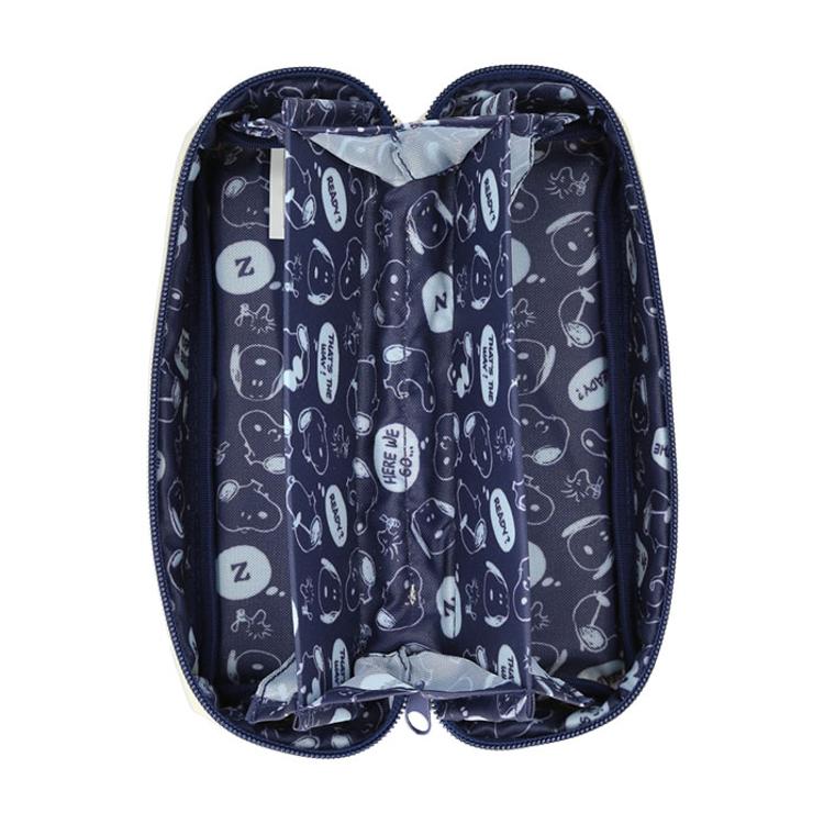 ・ファスナーを開けると、中央のルームが持ち上がり、3つのトレーに分かれる機能的なペンケース。