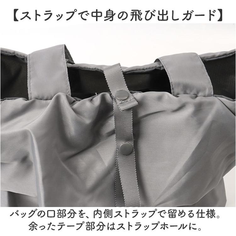 ・シワになりにくく折りたたんでストラップボタンでひとまとめ。エコバッグやサブ使いも☆