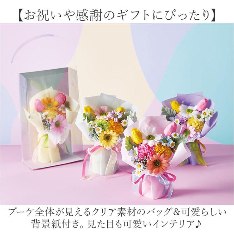 ソープフラワー ブーケ ポット 手提げバッグ付き 通販 ソープフラワーブーケ 花束 花 フラワー フラワーギフト ソープ お花 ギフト 贈り物 パッケージ クリア かわいい 可愛い