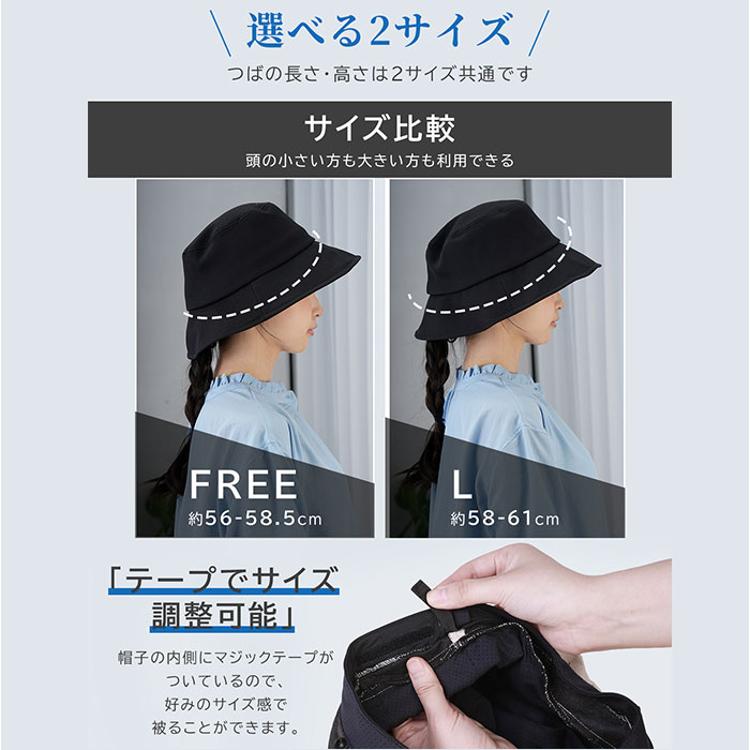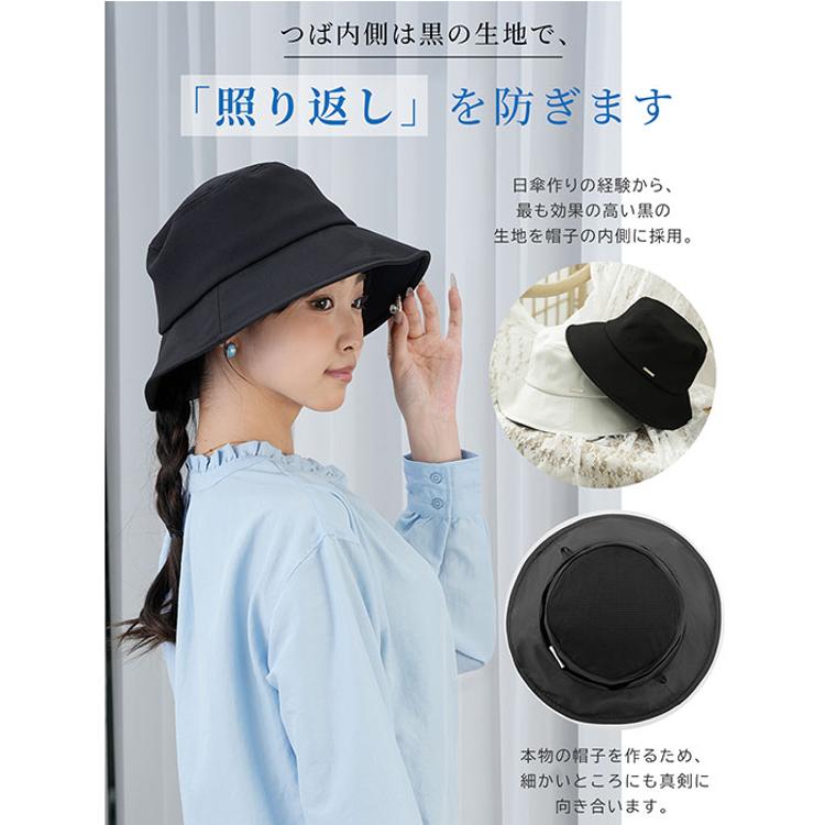 ・遮熱効果にも優れ、ツバの内側はブラック生地で照り返しを防ぐ!日傘が使えないシーンでも重宝。