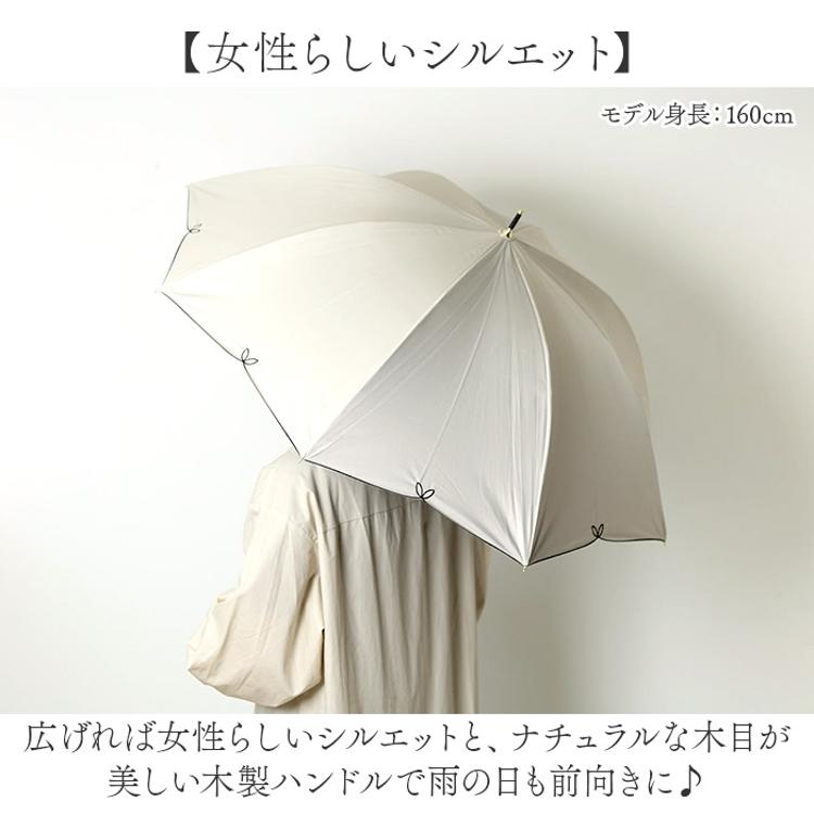 ・広げれば女性らしいシルエットと、ナチュラルな木目が美しい木製ハンドルで雨の日も前向きに♪