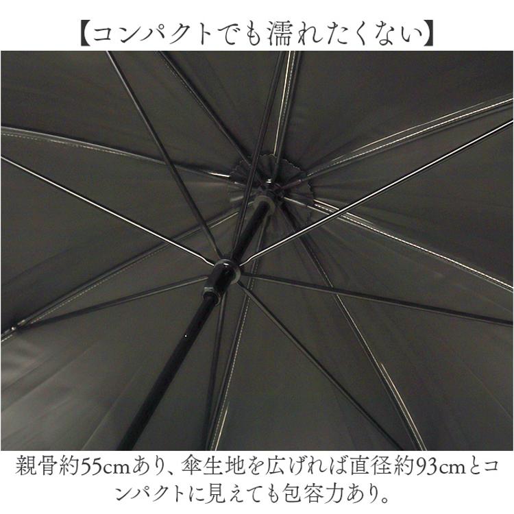 ・親骨約55cmあり、傘生地を広げれば直径約93cmとコンパクトに見えても包容力あり。