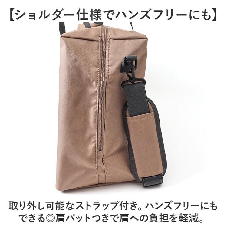 ・取り外し可能なストラップ付き。ハンズフリーにもできる◎肩パットつきで肩への負担を軽減。
