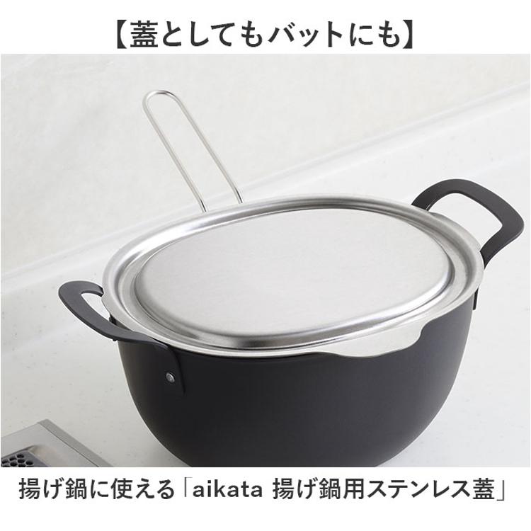 ・揚げ鍋に使える「aikata 揚げ鍋用ステンレス蓋」。