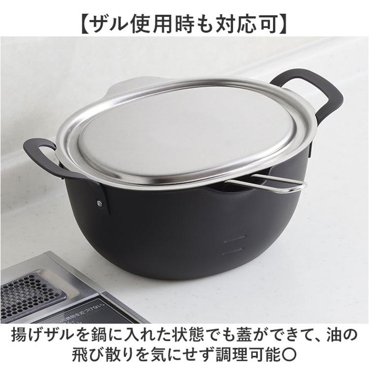 ・揚げザルを鍋に入れた状態でも蓋ができて、油の飛び散りを気にせず調理可能〇
