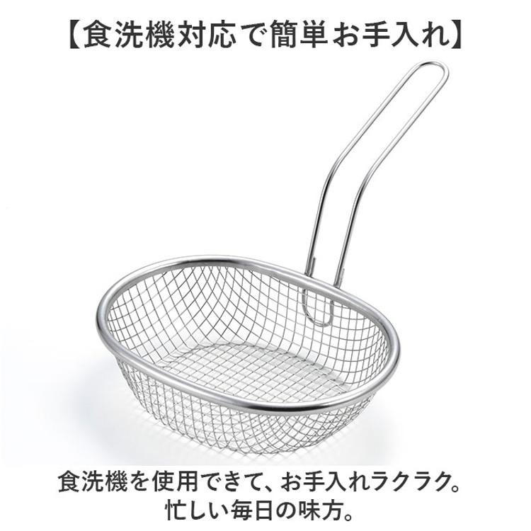 ・唐揚げやポテトを一気に揚げられる!程よい深さのオーバル形状。