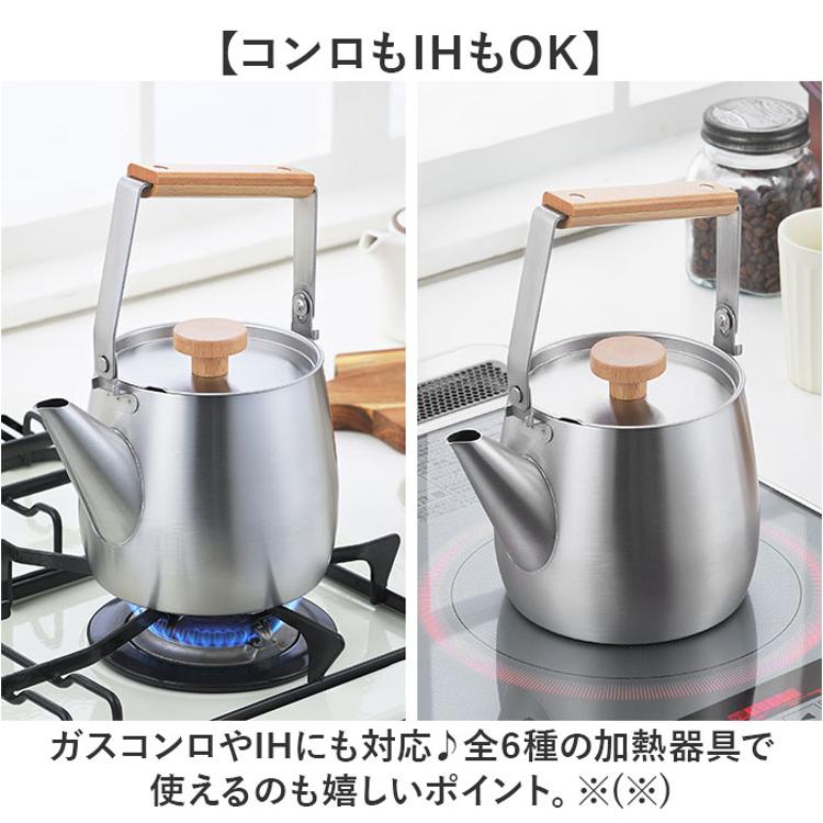 ・長く使えるシンプルなデザイン♪ステンレスと天然木の組み合わせのステンレスケトル
