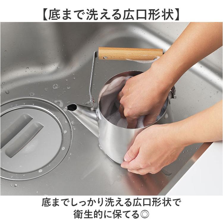 ・ケトルを傾けてもフタが落ちにくい構造に。フタを抑える手間を少なく。