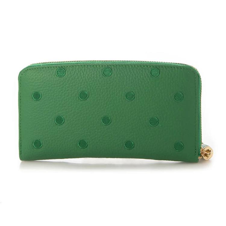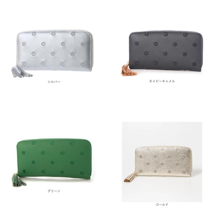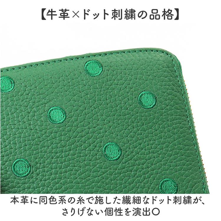 ・おしゃれと機能を両立させた「perche ペルケ 牛革ドット刺繍ラウンド長財布」。