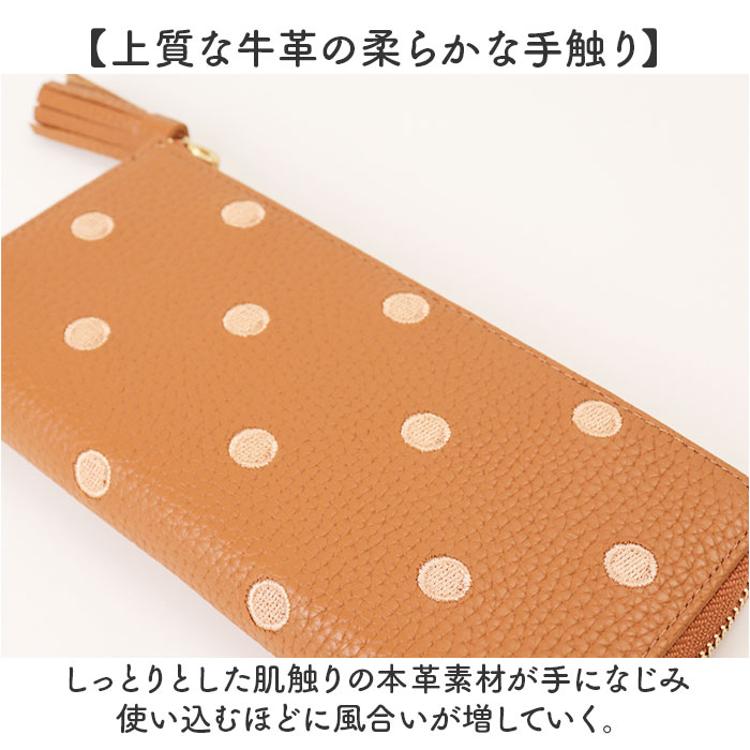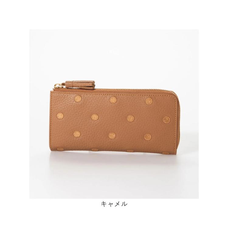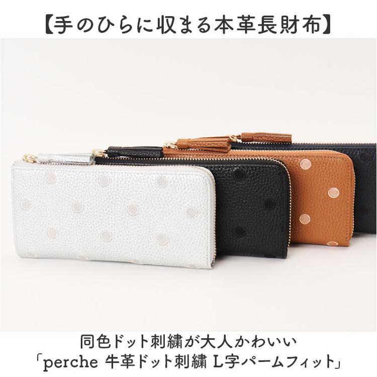 ・同色ドット刺繍が大人かわいい「perche 牛革ドット刺繍 L字パームフィット」