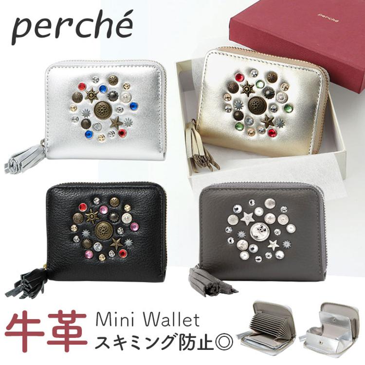 perche ペルケ ミニ財布 レディース 通販 コインケース お財布 ミニウォレット 小銭入れ ウォレット おさいふ コンパクト財布 ジャバラ じゃばら 蛇腹 カード入れ ジャバラ式 コンパクト ミニ スタッズ 小さい 小さめ かわいい 可愛い