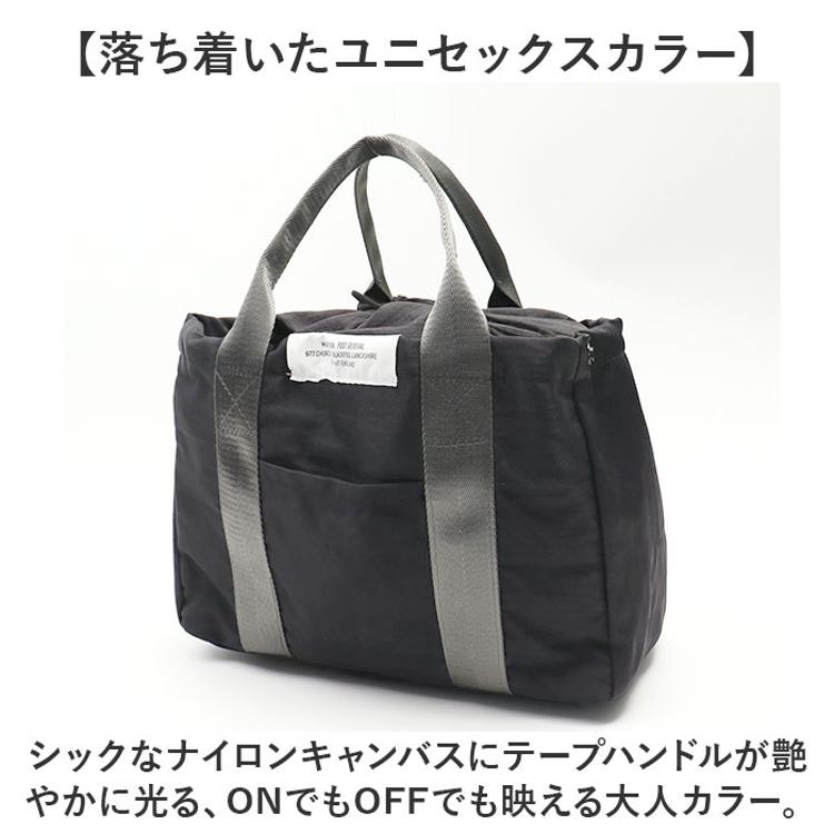・シックなナイロンキャンバスにテープハンドルが艶やかに光る、ONでもOFFでも映える大人カラー。