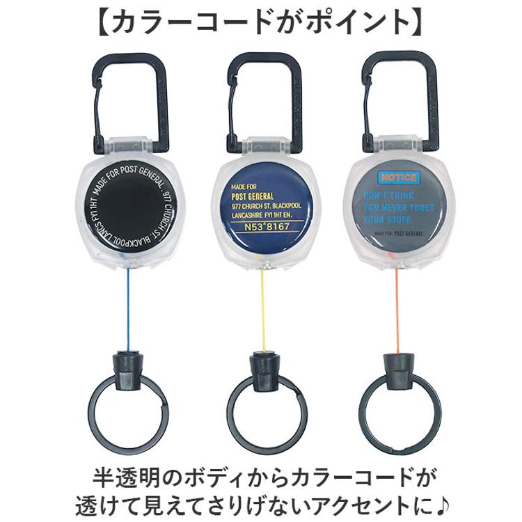 POST GENERAL ポストジェネラル リールキーホルダー 通販 リール付きキーホルダー リール付き キーホルダー リール式キーホルダー リールストラップ キーリール 伸びる カラビナ付き カラビナ リール カラーコード 紛失防止 落下防止 飾り 便利