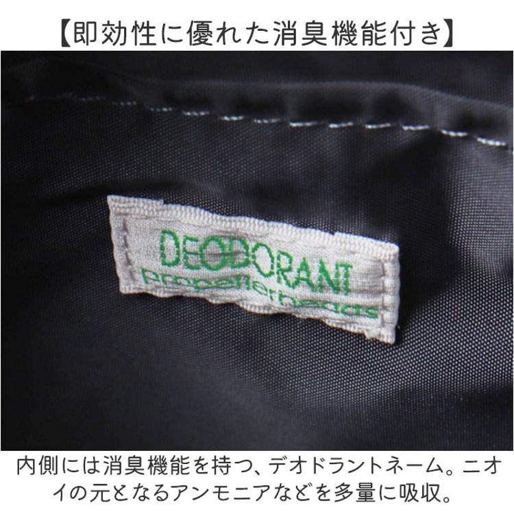 ・内側には消臭機能を持つ、デオドラントネーム。ニオイの元となるアンモニアなどを多量に吸収。