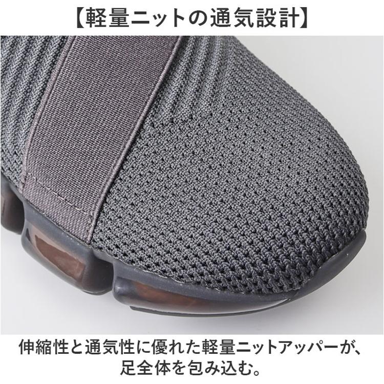 ・紐もファスナーも不要なスリッポン設計で、かかとのプルループを引くだけですぐ履ける!