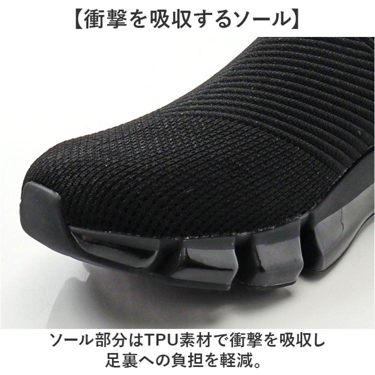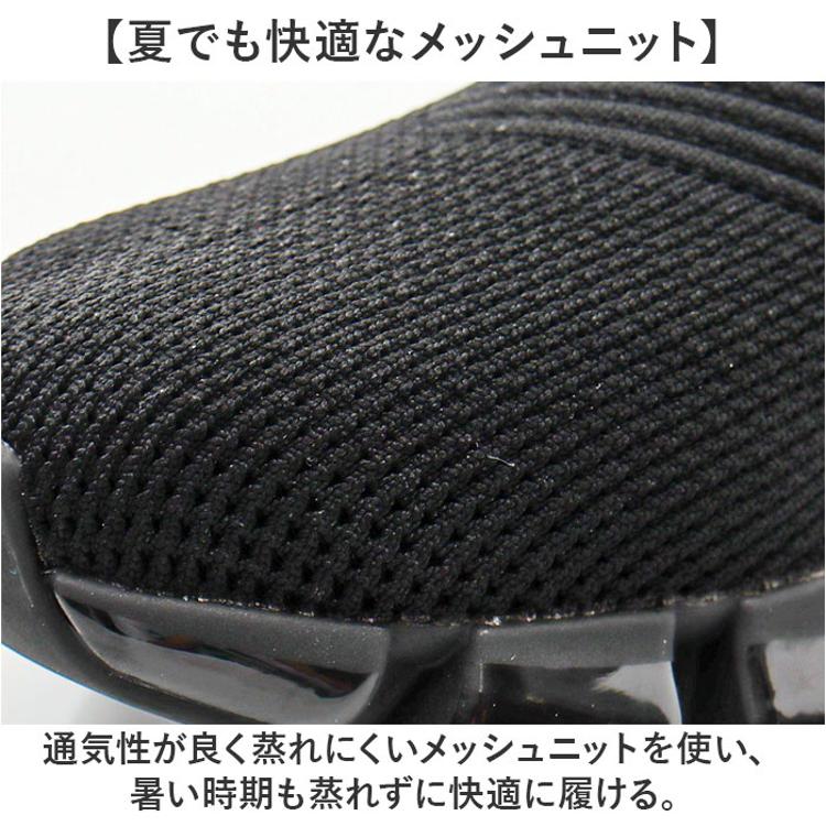 ・通気性が良く蒸れにくいメッシュニットを使い、暑い時期も蒸れずに快適に履ける。