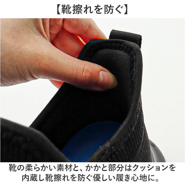 ・靴の柔らかい素材と、かかと部分はクッションを内蔵し靴擦れを防ぐ優しい履き心地に。