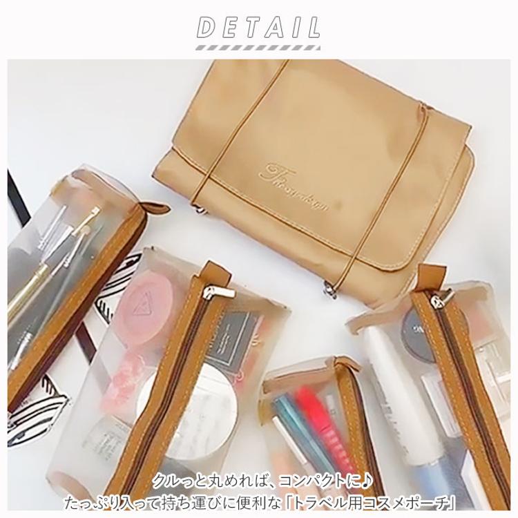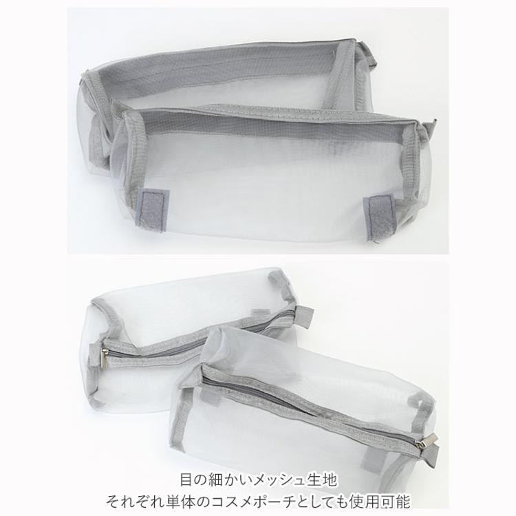 4つの小さなポーチは、トラベルポーチ本体から面ファスナーで切り離すことができ、それぞれ単体のコスメポーチとしても使用可能。